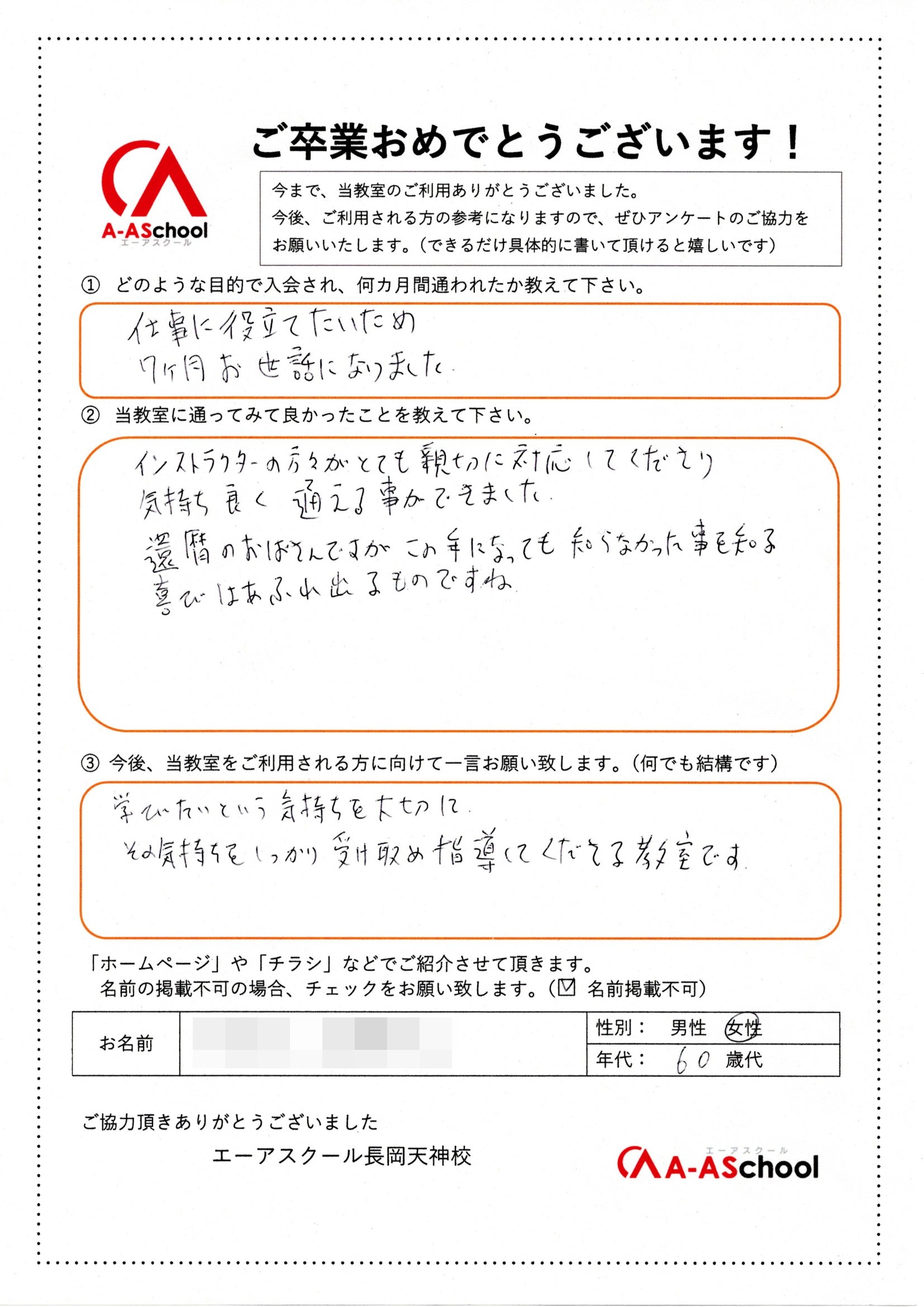 【60代女性】 スマートフォンの使い方から受講され、パソコン入門、ワードを1年勉強