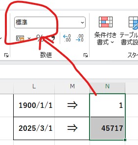 これは、日付データのセルを選んで表示形式を「標準」にするとシリアル値の確認ができますね😊