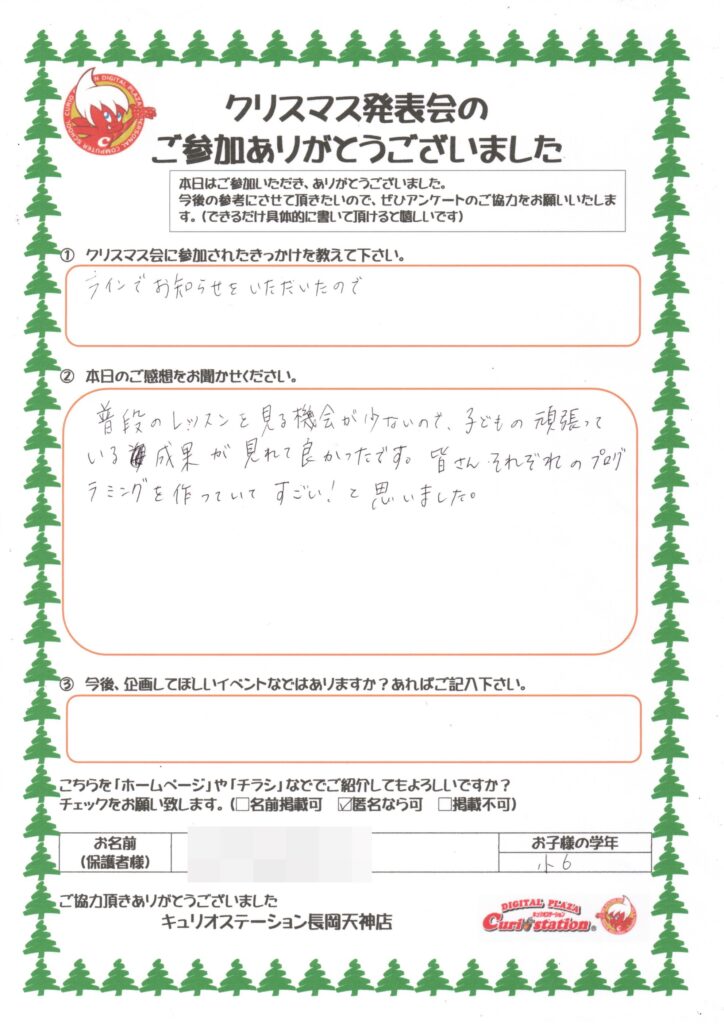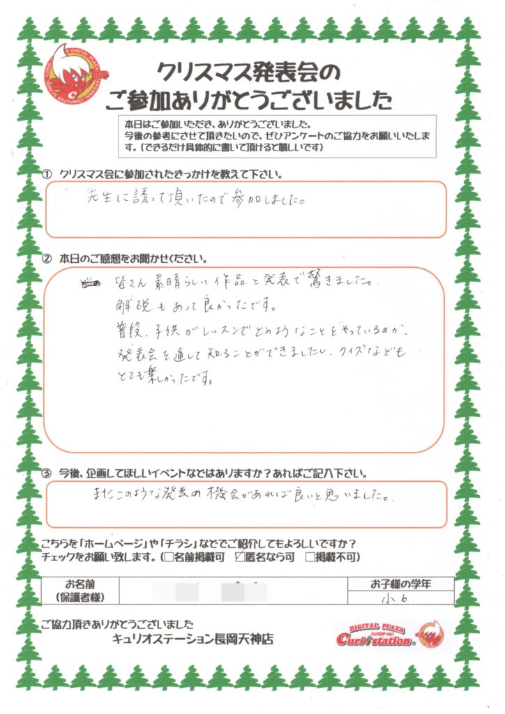 先日の12月12日(日)クリスマス発表会を実施しました。
