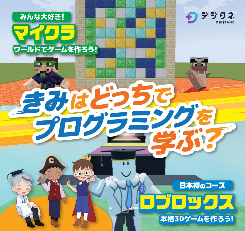 大人気のマイクラのほか、最近、人気急上昇中のロブロックス、そして、スクラッチ、本格ゲームエンジンのUnity(ユニティ)まで、お好きなコースで体験できます。