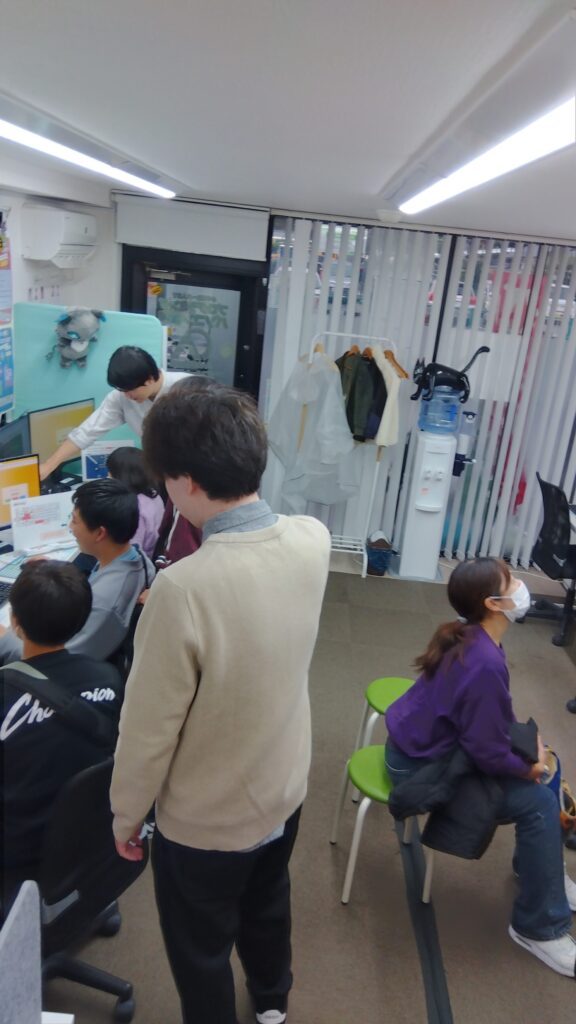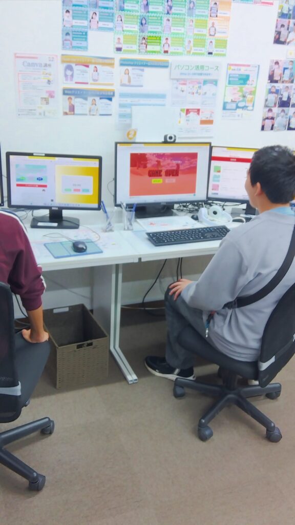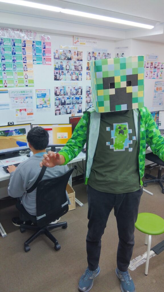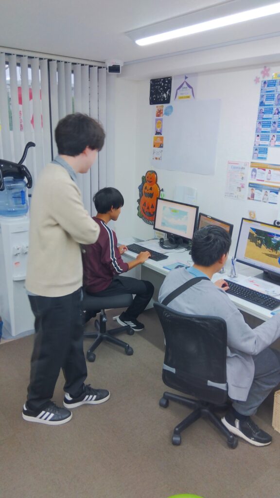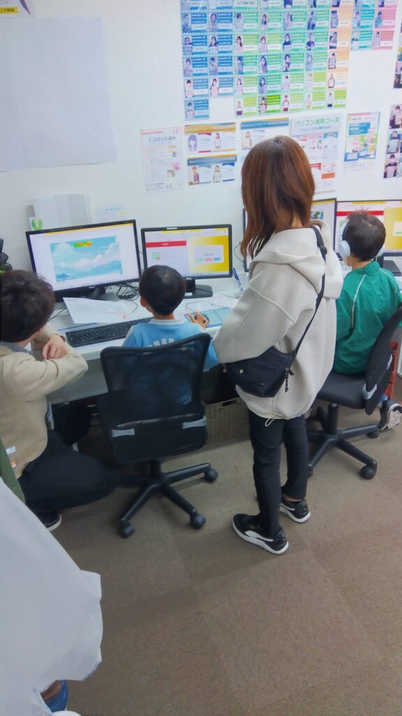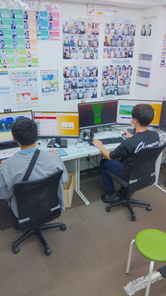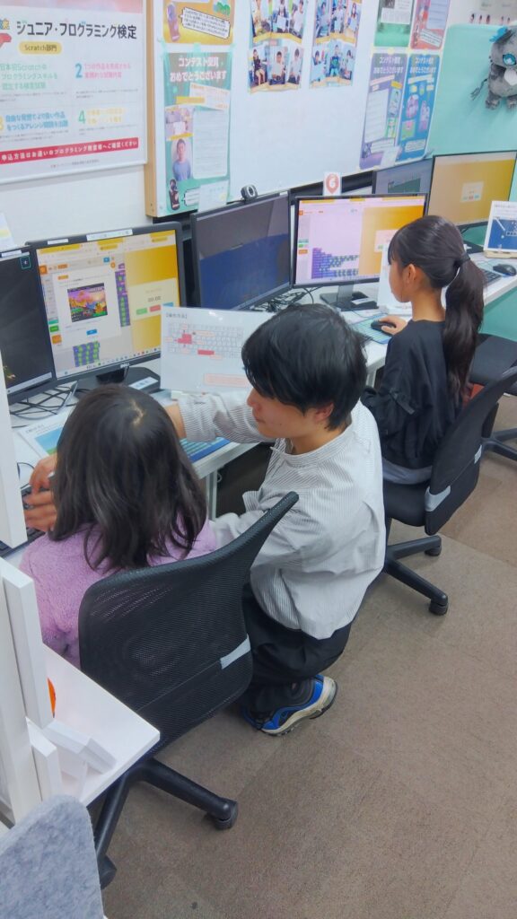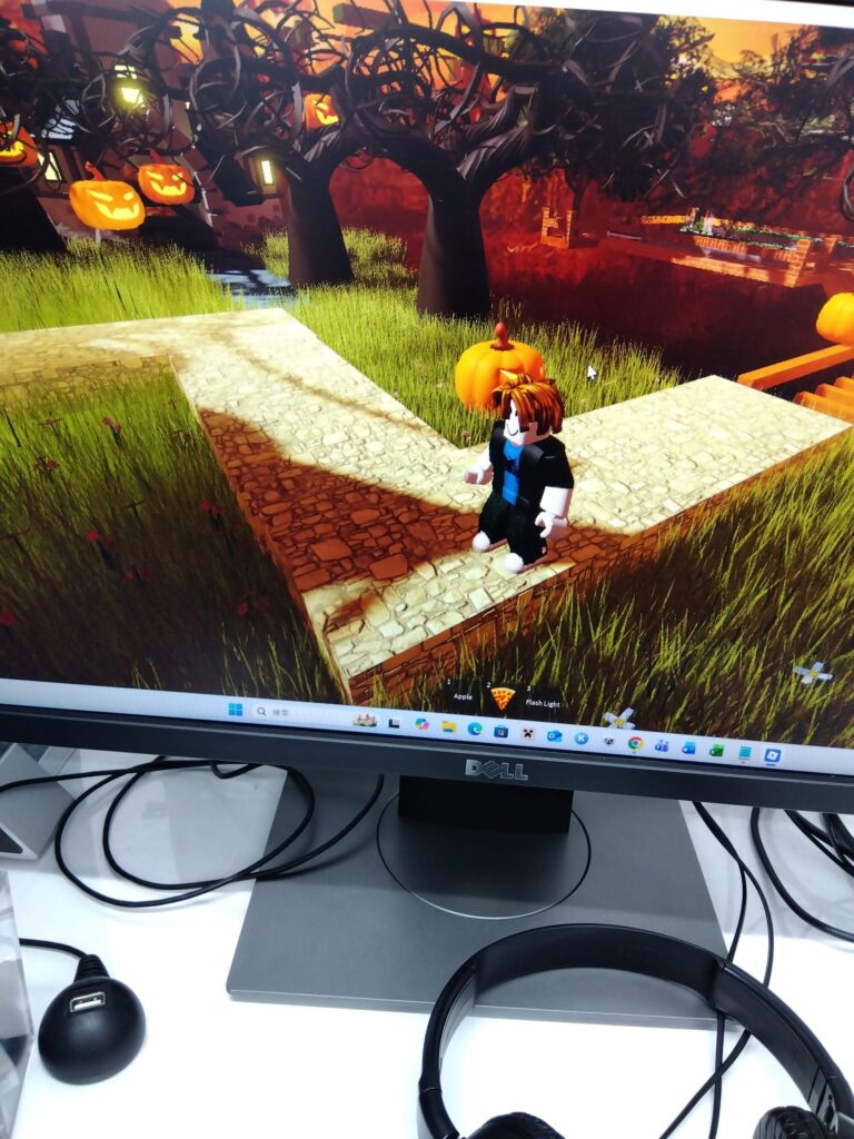生徒さんが、普段レッスンで作っているスクラッチを使ったゲームや、プログラミングコンテストで入賞した当校の生徒さんの作品、そして、マイクラや人気急上昇中のロブロックス、本格ゲーム開発ができるUnity(ユニティ)で作ったシューティングゲーム・ブロック崩しゲームなどプレイしてもらいました。